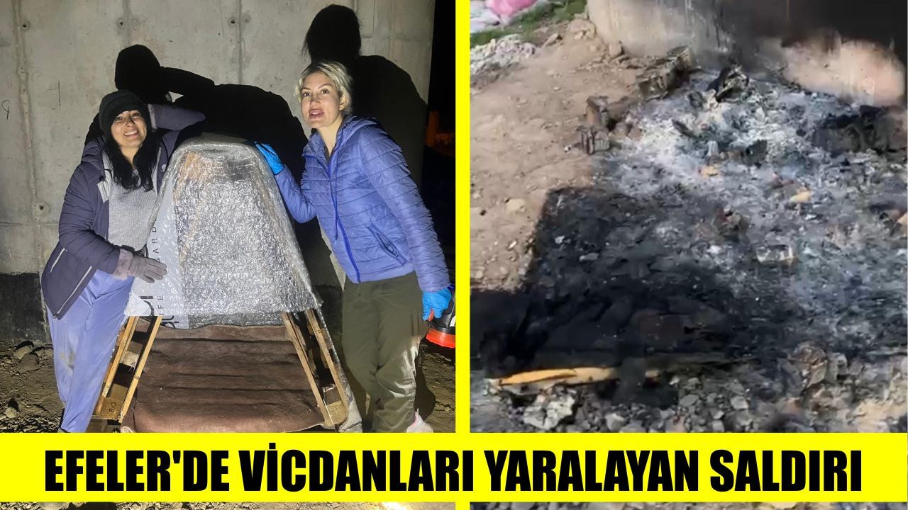Aydın’ın Efeler ilçesinde, sokak hayvanlarının soğuk kış günlerinde korunması amacıyla yapılan yuvalar kimliği belirsiz kişi ya da kişiler tarafından yakılarak kullanılamaz hale getirildi.