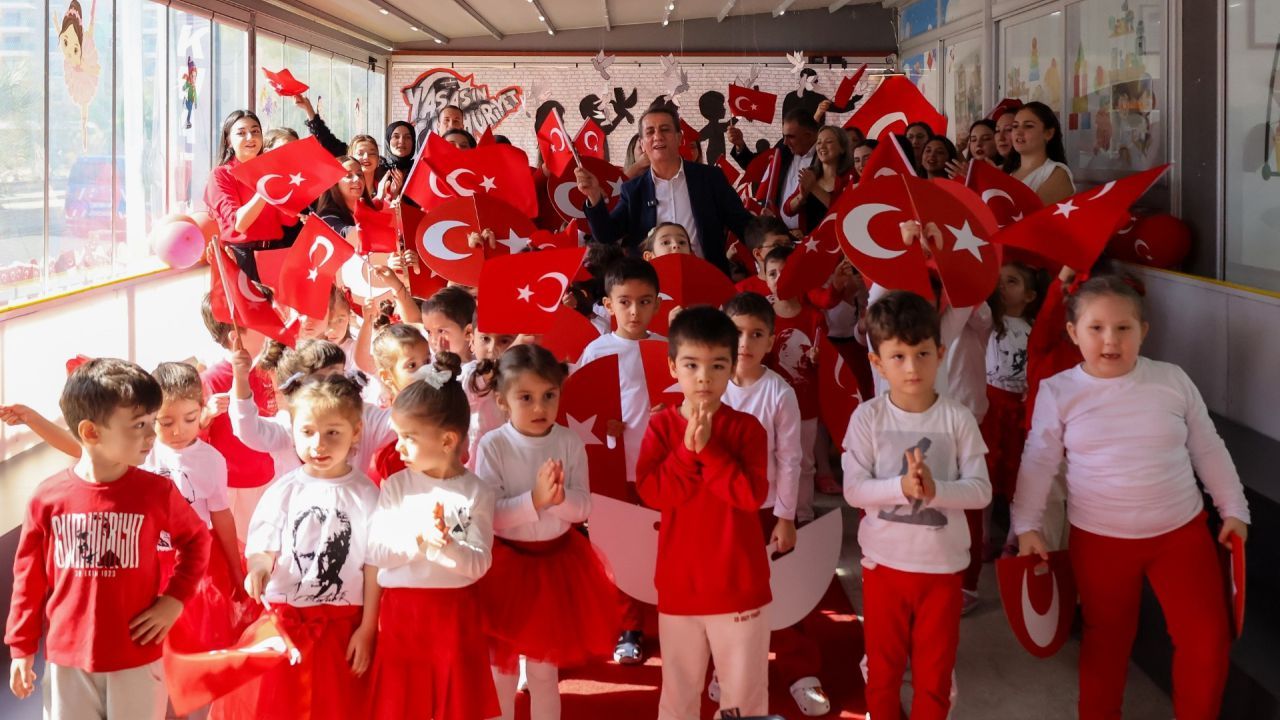 Efeler Belediyesi’ne bağlı gündüz bakımevlerinde eğitim gören minik öğrenciler, Cumhuriyet’in 102. yılı dolayısıyla hazırladıkları özel programla bayram sevincini doyasıya yaşadı. Mustafa Kemal Atatürk baskılı tişörtleri ve Türk bayraklarıyla sahneye çıkan çocuklar, söyledikleri marşlar, okudukları şiirler ve oynadıkları oyunlarla izleyenleri hem gururlandırdı hem de duygulandırdı.