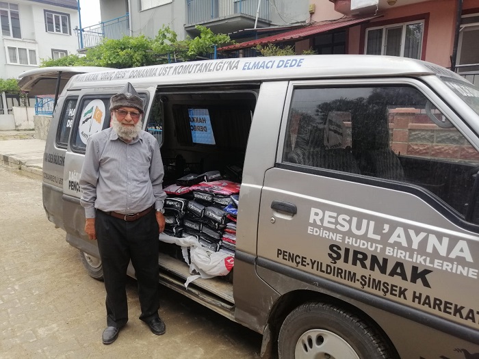 İlçede "Elmacı Dede" olarak tanınan Yılmaz, yaklaşık 1205 kilometre yol katederek, yetim kampındakilere ulaşacağını söyledi.