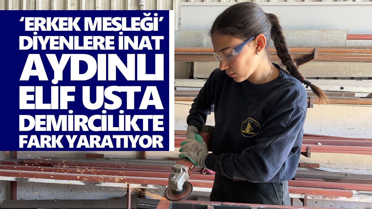 Aydın'ın Nazilli ilçesinde baba mesleğini sürdüren 22 yaşındaki Elif Yeşil Dönertaş, demire şekil vermek için mesai yapıyor.