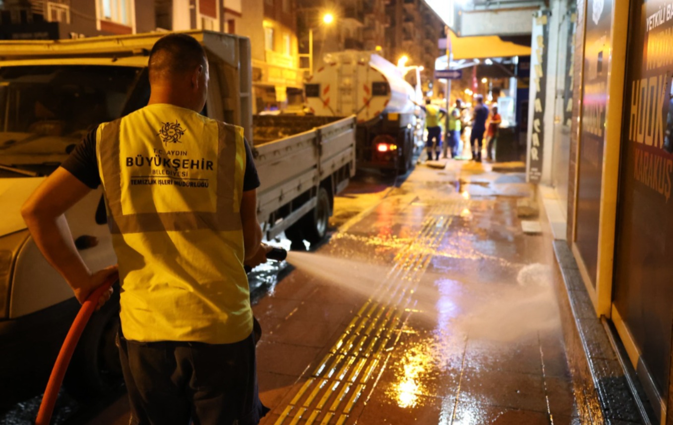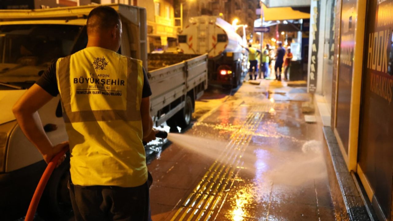 Aydın Büyükşehir Belediyesi, kent genelinde gece gündüz demeden hayata geçirdiği temizlik çalışmalarına devam ediyor.