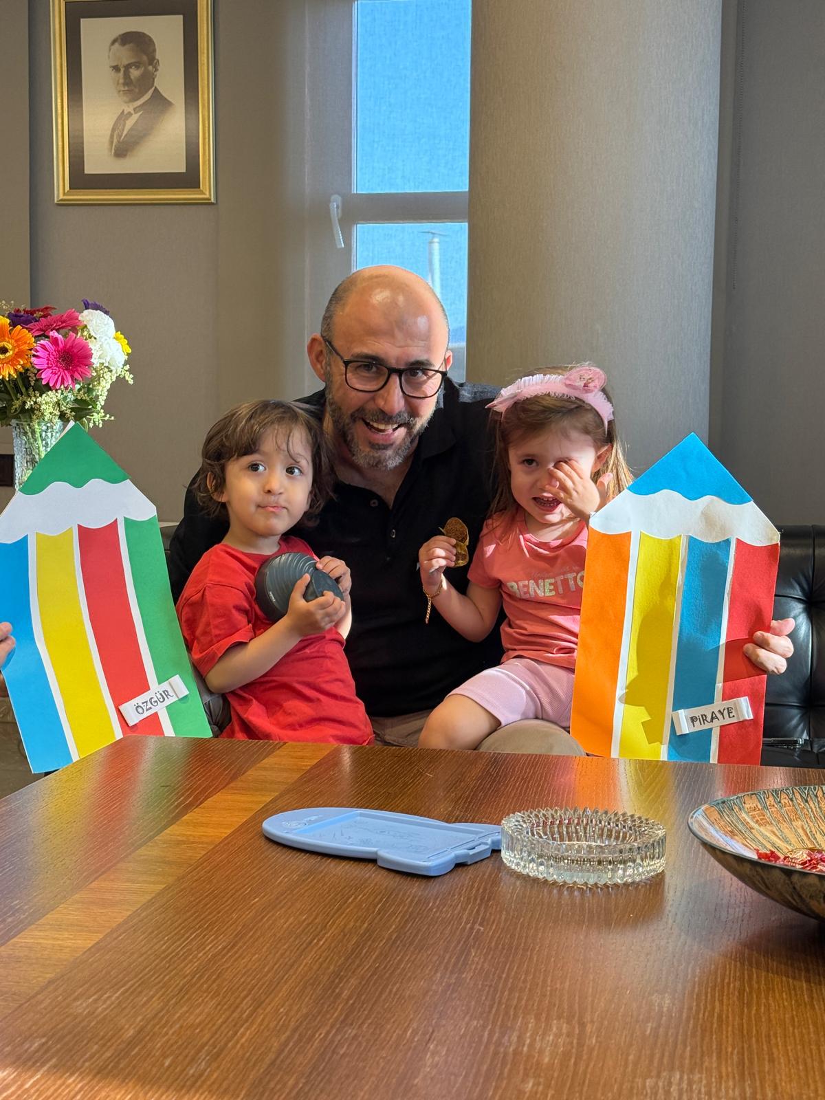 Çocuklarımız bugün de sürpriz yaparak karneleriyle geldiler. Hepsini yürekten kutlarım, başarıları daim olsun. Öte yandan her baba gibi benim için de heyecan dolu bir gündü. İş yoğunluğundan dolayı karne törenlerine katılamadığım çocuklarım Özgür ve Piraye de karneleriyle beni ziyaret edip tarifsiz mutluluk yaşattılar. Bugün hiç bitmesin diyebileceğim güzel bir yoğunluktu. Tüm öğretmen, öğrenci ve velilerimize yeni eğitim öğretim yılına kadar iyi tatiller dilerim.