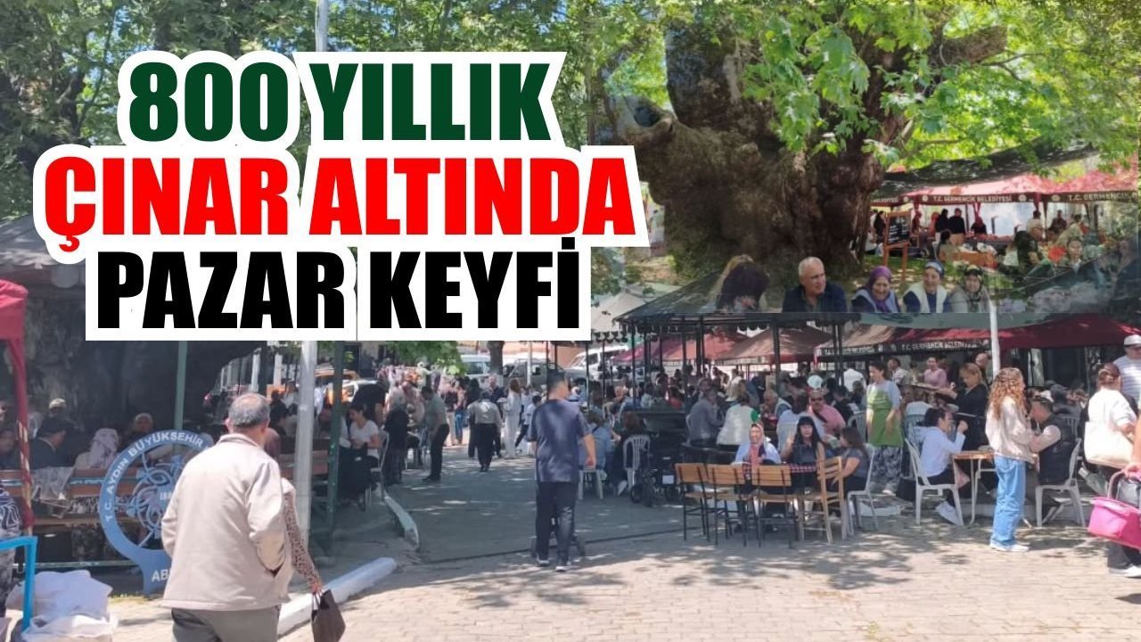 800 yıllık ağacın gölgesinde kurulan pazarda vatandaşlar hem alışveriş yaptı hem de doğayla iç içe vakit geçirdi. Yerel üreticilerin tezgâh açtığı alanda doğal ürünler yoğun ilgi görürken, bölge sakinleri gün boyu keyifli bir atmosferde buluştu.