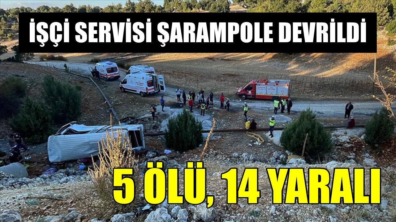 Mersin’in Erdemli ilçesinde sabah saatlerinde meydana gelen trafik kazasında, tarım işçilerini taşıyan 33 VLP 55 plakalı minibüs kontrolden çıkarak şarampole devrildi. Henüz kimliği belirlenemeyen sürücünün idaresindeki araçta bulunan 19 kişiden 5’i olay yerinde yaşamını yitirdi. Yaralanan 14 kişi ise ambulanslarla çevredeki hastanelere kaldırıldı.