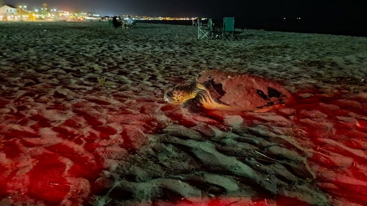 Kuşadası’nda bir sahil sitesinde yaşayan vatandaşlar, gece saatlerinde kumsala çıkan bir Caretta caretta’nın yuva kazmaya başladığını fark etti. Yoğun ışık kirliliğine rağmen yuvasını kazmayı başaran kaplumbağa, yumurtalarını bıraktı ve yuvayı kapattı. Ancak denize dönmek yerine ışıkların yoğun olduğu sitelere yöneldi. Gönüllülerin müdahalesiyle yeniden denize yönlendirilen kaplumbağa, sulara dalarak gözden kayboldu.