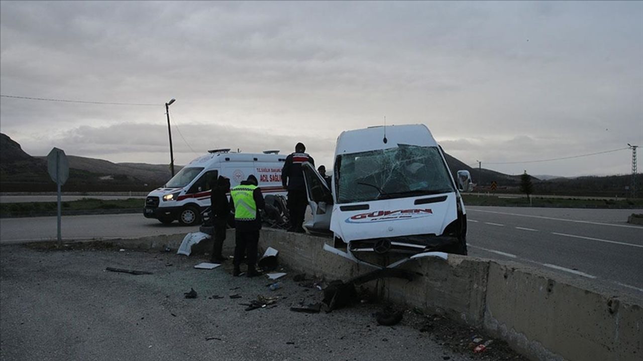 Tokat'ta Adıgüzel Sarı idaresindeki 60 ACK 870 plakalı işçi servisi, Tokat Turhal kara yolu Çaylı kavşağında kontrolden çıkarak istinat duvarına çarptı.
