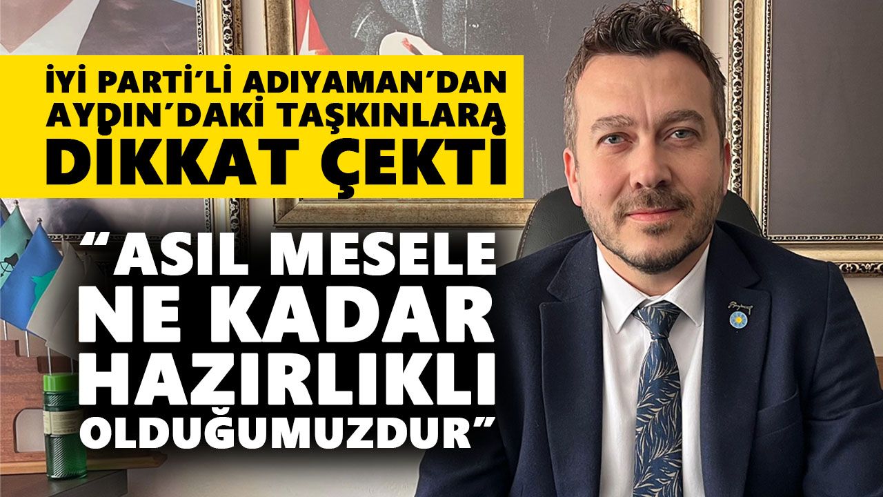 Adıyaman açıklamasında, “Aydın’da etkili olan aşırı yağışlar; toprak kaymalarına ve özellikle Söke ile Koçarlı’da Büyük Menderes taşkın ovasında su baskınlarına yol açmıştır. Hem yerleşim alanları hem de verimli tarım arazileri ciddi risk altındadır. Bazı yerleşim alanlarının tedbir amaçlı tahliye edilmiş olması ise riskin boyutunu açıkça ortaya koymaktadır. Büyük Menderes Havzası’nda taşkın doğal bir süreçtir. Asıl mesele bu gerçeğe ne kadar hazırlıklı olduğumuzdur.” ifadelerini kullandı.