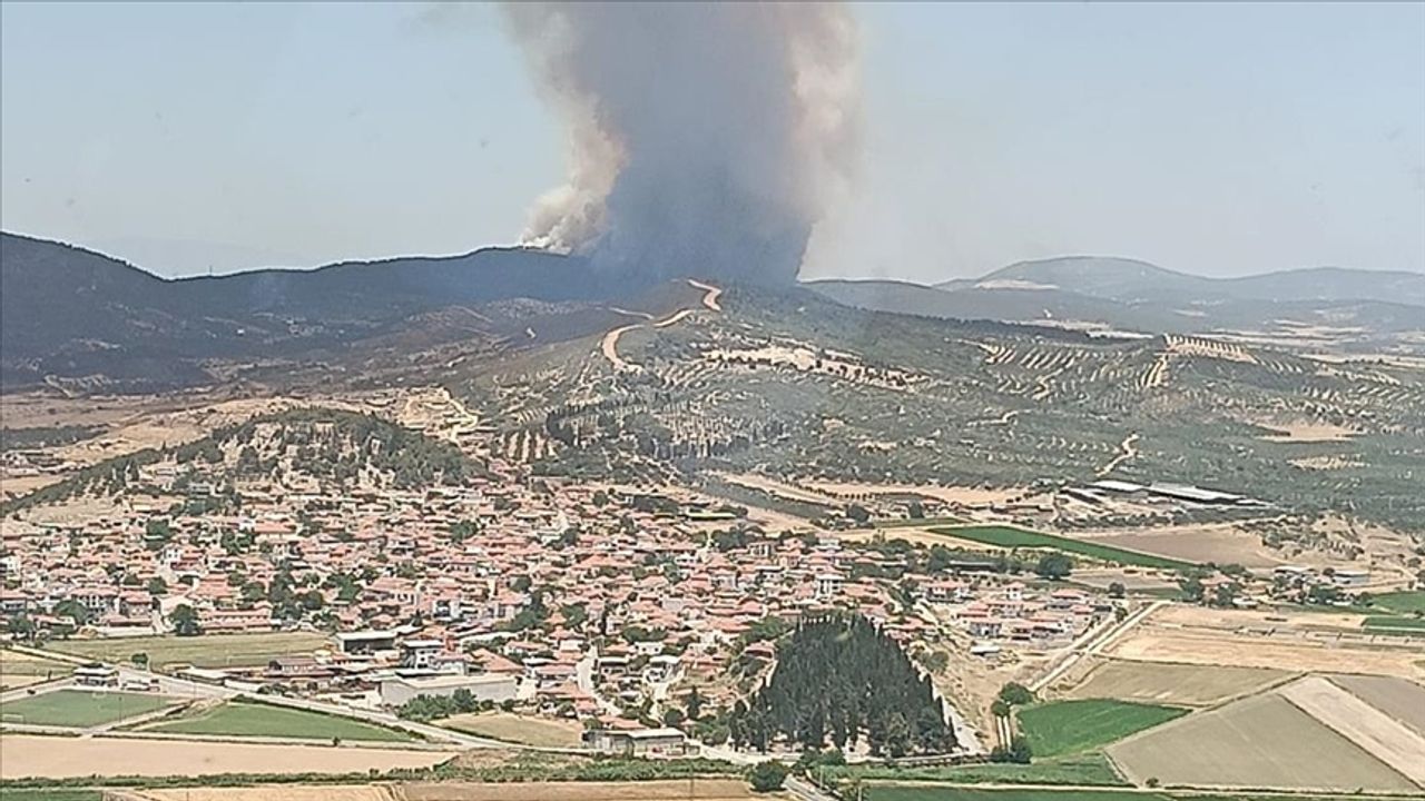 İhbar üzerine İzmir Orman Bölge Müdürlüğüne ait 11 uçak, 13 helikopter, 32 arazöz, 10 su ikmal ve 5 dozer sevk edildi.