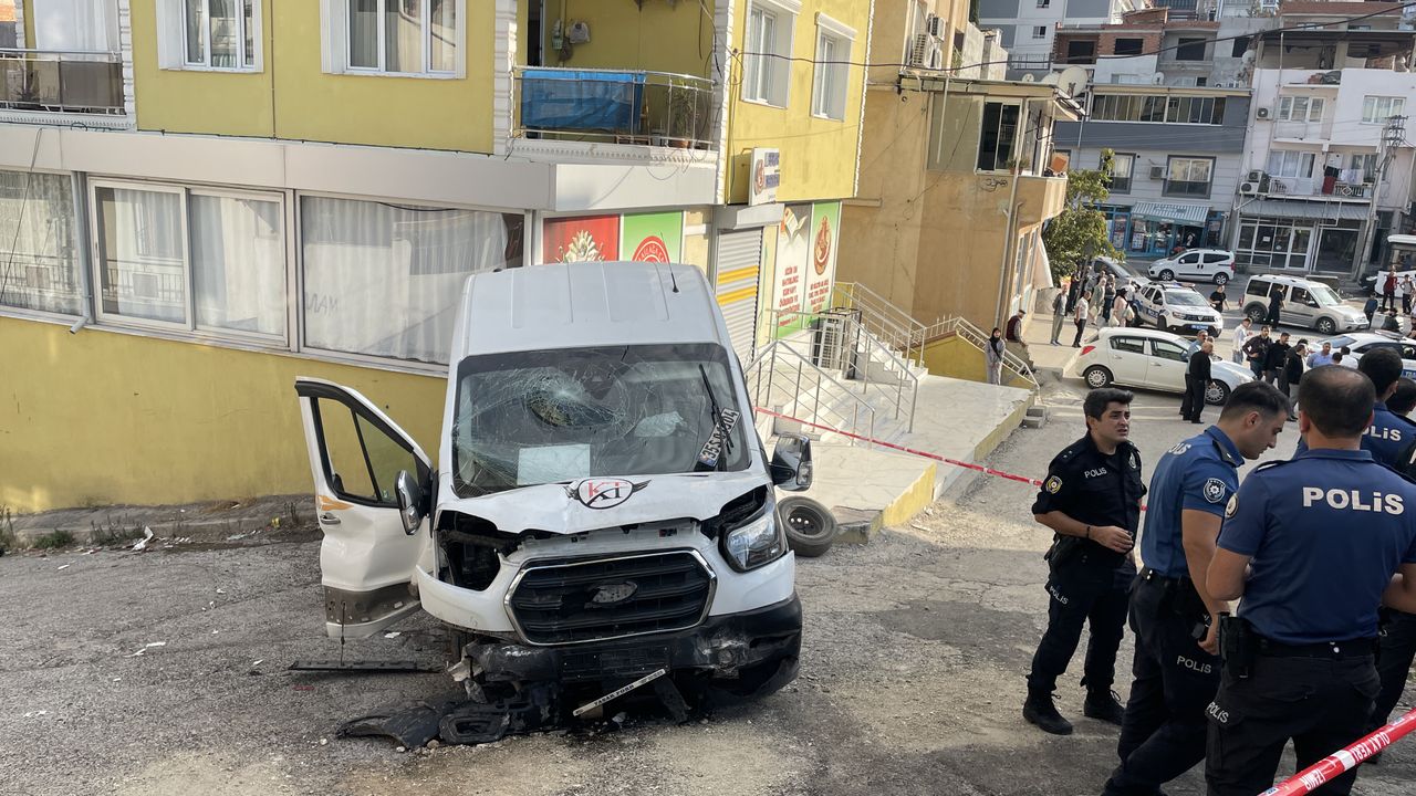 Alınan bilgiye göre, A.K. idaresindeki 35 S 01504 plakalı servis minibüsü, Çamkule Mahallesi'nde bir kargo firmasının işçilerini aldıktan sonra yokuş aşağı ilerlerken freni boşaldı.