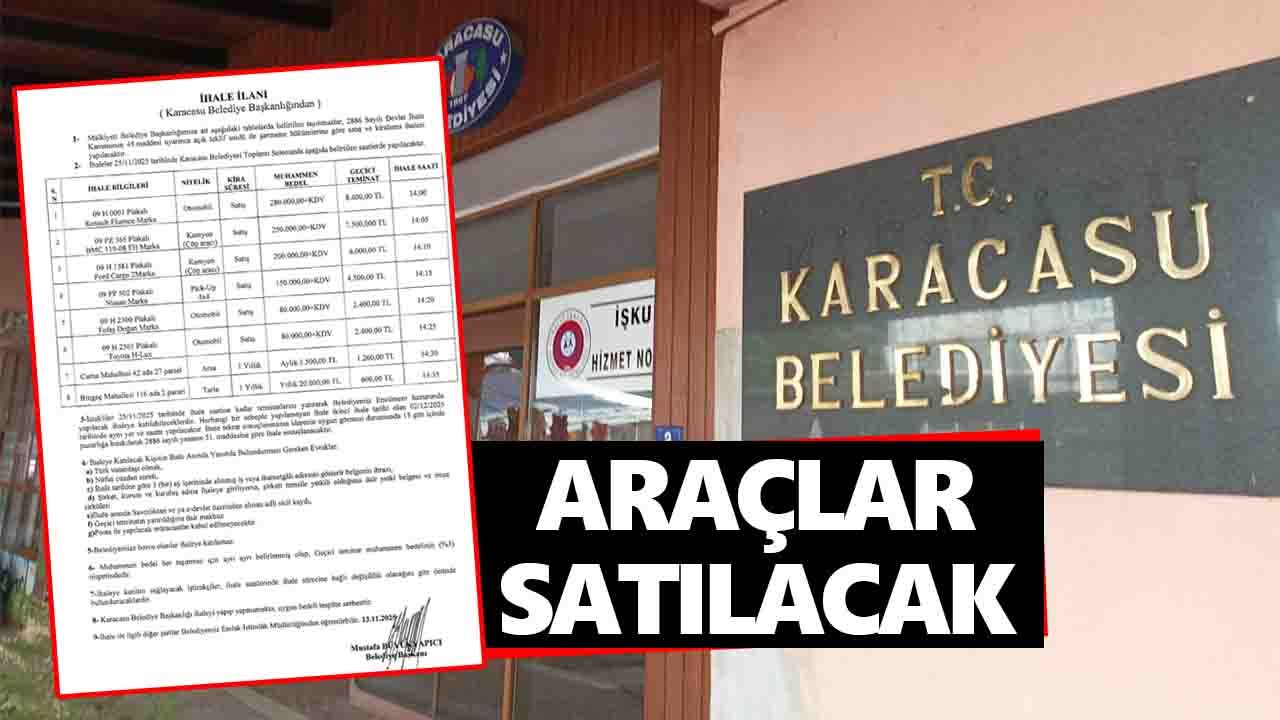 Mülkiyeti belediyeye ait üç adet otomobil, bir adet pikap ve iki adet çöp toplama aracı satılırken, Cuma Mahallesi'nde bulunan arsa ve Bingeç Mahallesi'nde bulunan tarla 25 Kasım 2025 tarihinde yapılacak ihaleyle kiraya verilecek. Satılacak araçların muhammen bedeli 80 bin lira ile 280 bin lira arasında değişirken arsanın kira bedeli aylık 3 bin 500 tarlanın ise yıllık 20 bin lira olarak açıklandı. İhale tarihinden önce yatırılması gereken geçici teminat bedelleri ise 600 lira ile 8 bin 400 lira arasında değişiyor. Açık teklif usulüyle yapılacak ihaleler beşer saat 14:00'te başlayıp beşer dakika arayla gerçekleştirilecek.