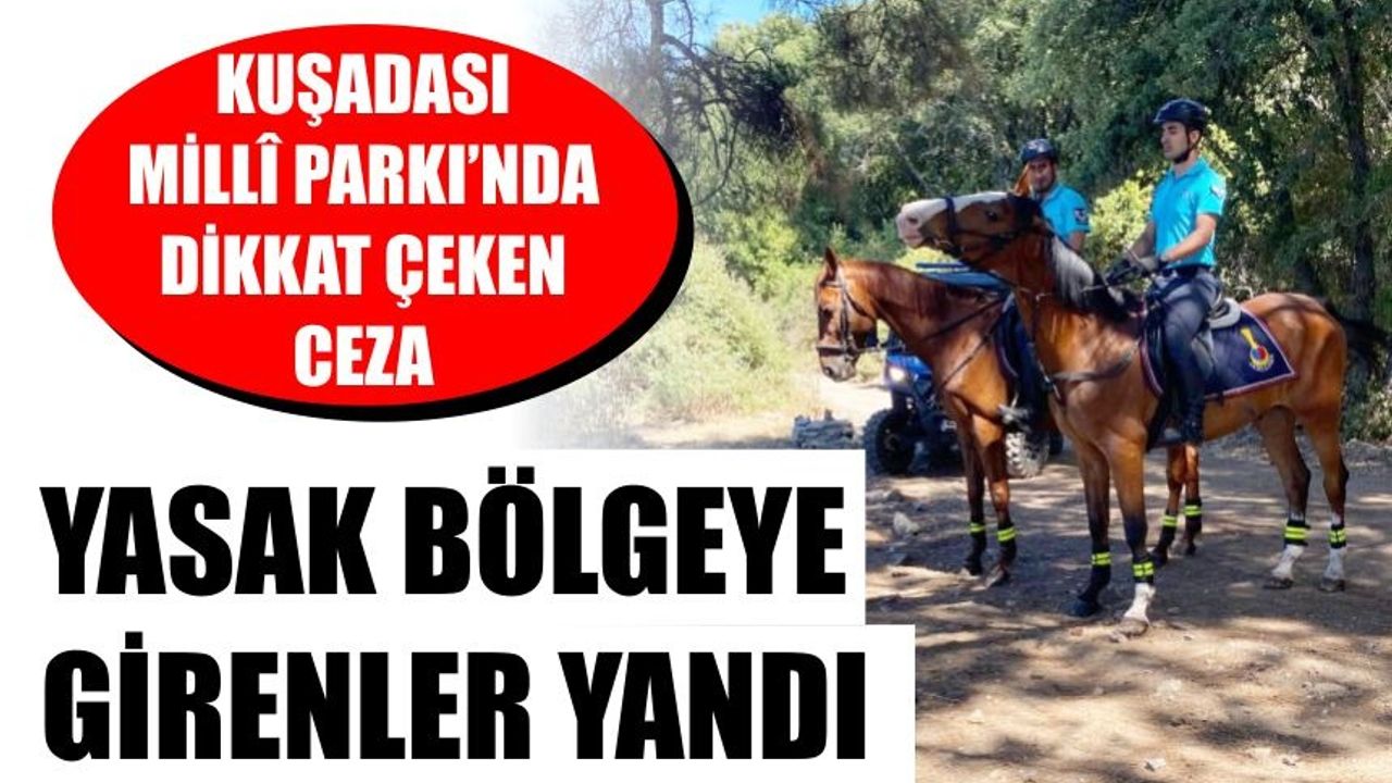 Kuşadası Dilek Yarımadası Millî Parkı’nda girilmesi yasak olan bölgeye girdiği tespit edilen 5 kişiye toplam 14 bin 765 lira idari para cezası uygulandı.