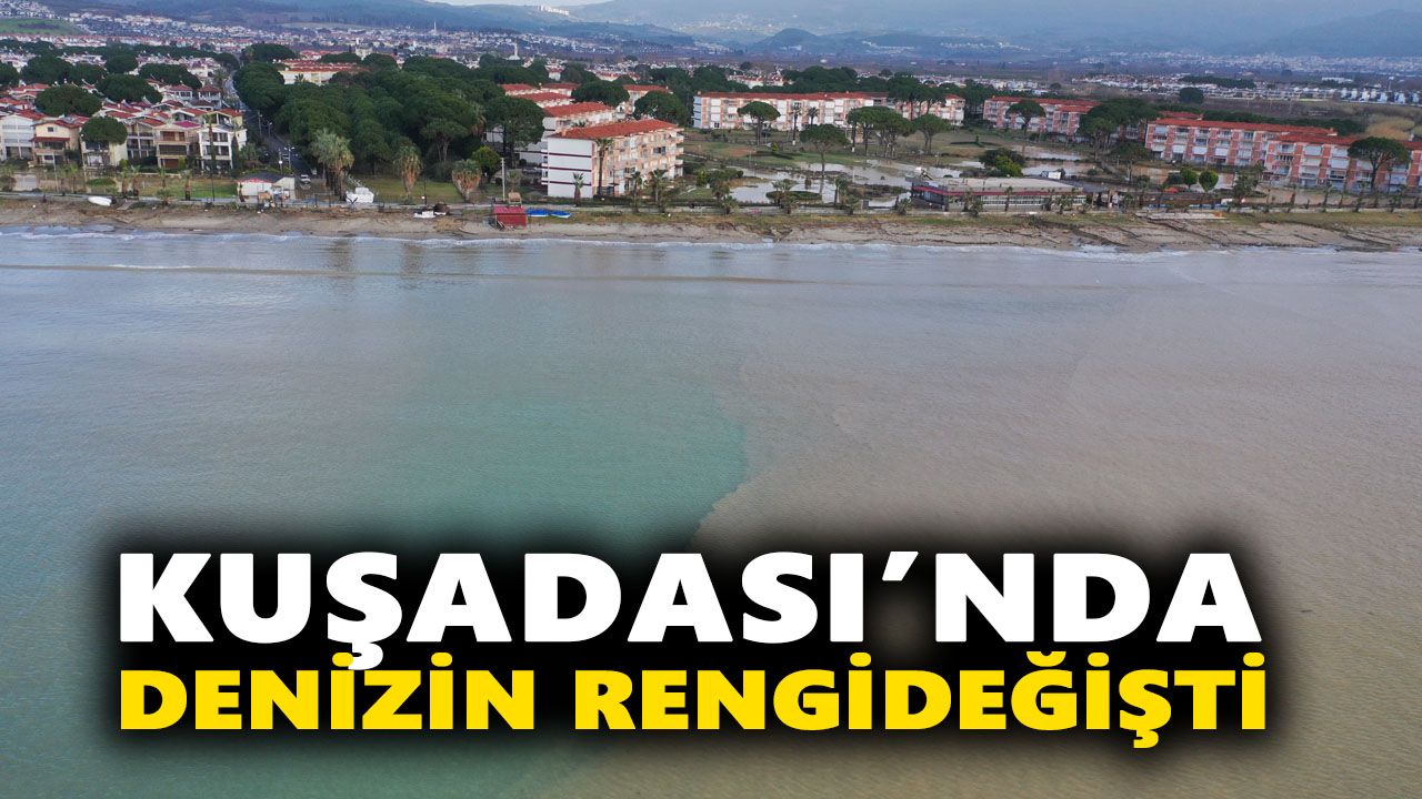 Sel sularının dere yatakları ve yağmur suyu kanalları aracılığıyla denize ulaşmasıyla birlikte Kuşadası sahilinde denizin renginin değiştiği görüldü.