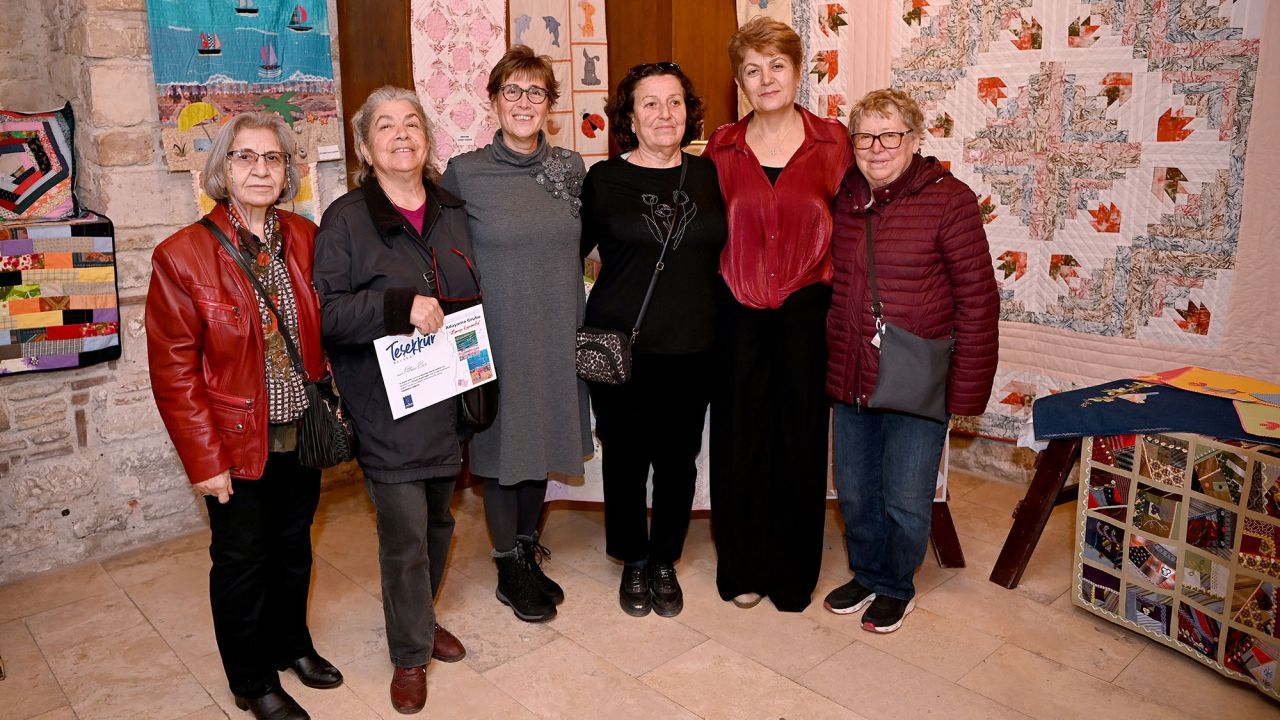Adayama Grubu’nun eğitmeni Zeynep Özkan, serginin çıkış noktasını ve amacını samimi sözlerle anlattı. Yıllardır Kuşadası’nda kursiyerleriyle birlikte kırkyama çalışmaları yaptıklarını belirten Özkan, kumaşlara ve renklere olan sevgilerinin bu serginin temelini oluşturduğunu söyledi. Daha çok eski, yıpranmış ya da modası geçmiş kıyafetleri kullandıklarını vurgulayan Özkan, “Çalışmalarımız bir ileri dönüşüm çalışması olduğu için hem doğaya hem de ekonomiye katkı sağlıyoruz. Eskiyen, küçülen ya da sandıklarda bekleyen kumaşları, kanaviçeler, danteller ve oyalarla buluşturuyor, özgün tasarımlarla onlara yeniden hayat veriyoruz” dedi. Sergi, bu yönüyle yalnızca bir sanat etkinliği değil, aynı zamanda farkındalık çağrısı olarak da öne çıkıyor.