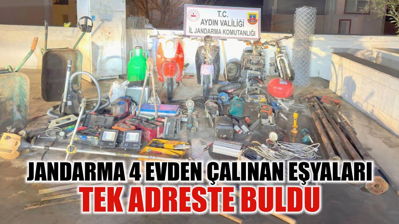 Aralarında televizyon, buzdolabı, araç yıkama makinası, elektrikli süpürge,bisiklet, peyzaj iş makinaları malzemeleri, spiral makinasının da bulunduğu 100 parçaya yakın eşya şüphelinin evinde ele geçirildi. Aydın İl Jandarma Komutanlığı Kuşadası İlçe Jandarma Komutanlığı çalışmalarıyla kısa sürede aydınlatılan olayla ilgili açıklama şöyle: