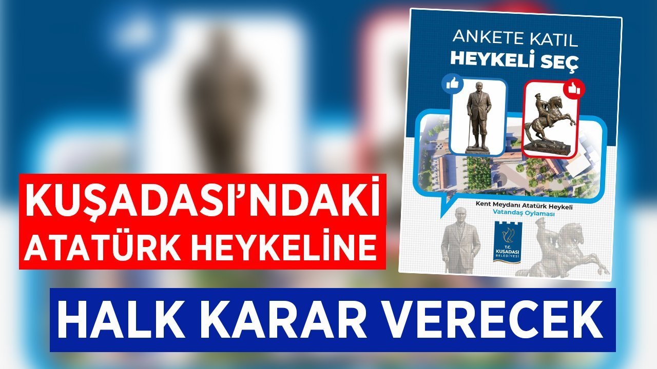 Kuşadası Belediyesi tarafından başlatılan anket kapsamında, belediyenin mobil uygulaması AdaMobil üzerinden Kuşadalılara iki farklı Atatürk figürü sunuldu. Ankette, Atatürk’ün elinde bastonuyla dik bir duruş sergilediği figür ile şahlanan at üzerinde tasvir edildiği figür arasında tercih yapılması istendi.