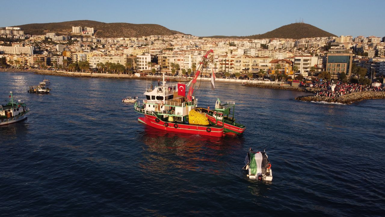 "Bu filo, dünyanın dört bir yanından gelen sivil aktivistlerden oluşuyor. Aralarında Türkiye'den gönüllü aktivistlerimiz de var. Bu gemilerde sadece yardım malzemesi değil, insanlığın onuru, kardeşliğin gücü, adaletin çağrısını taşıyor. Ey Sumud. Yalnız değilsiniz. Kuşadası yanınızda ve ilan ediyoruz. Sumud, Gazze kıyılarına ulaşana kadar mücadelemiz devam edecektir. Eğer, siyonist İsrail, Sumud Filosu'na saldırırsa, arkasından daha fazlasıyla geleceğiz. Biz hazırız. Kuşadası hazır. Sumud Filosu Gazze sularına ulaşana kadar burada temsili nöbet tutacağız, dayanışmayı diri tutacağız."