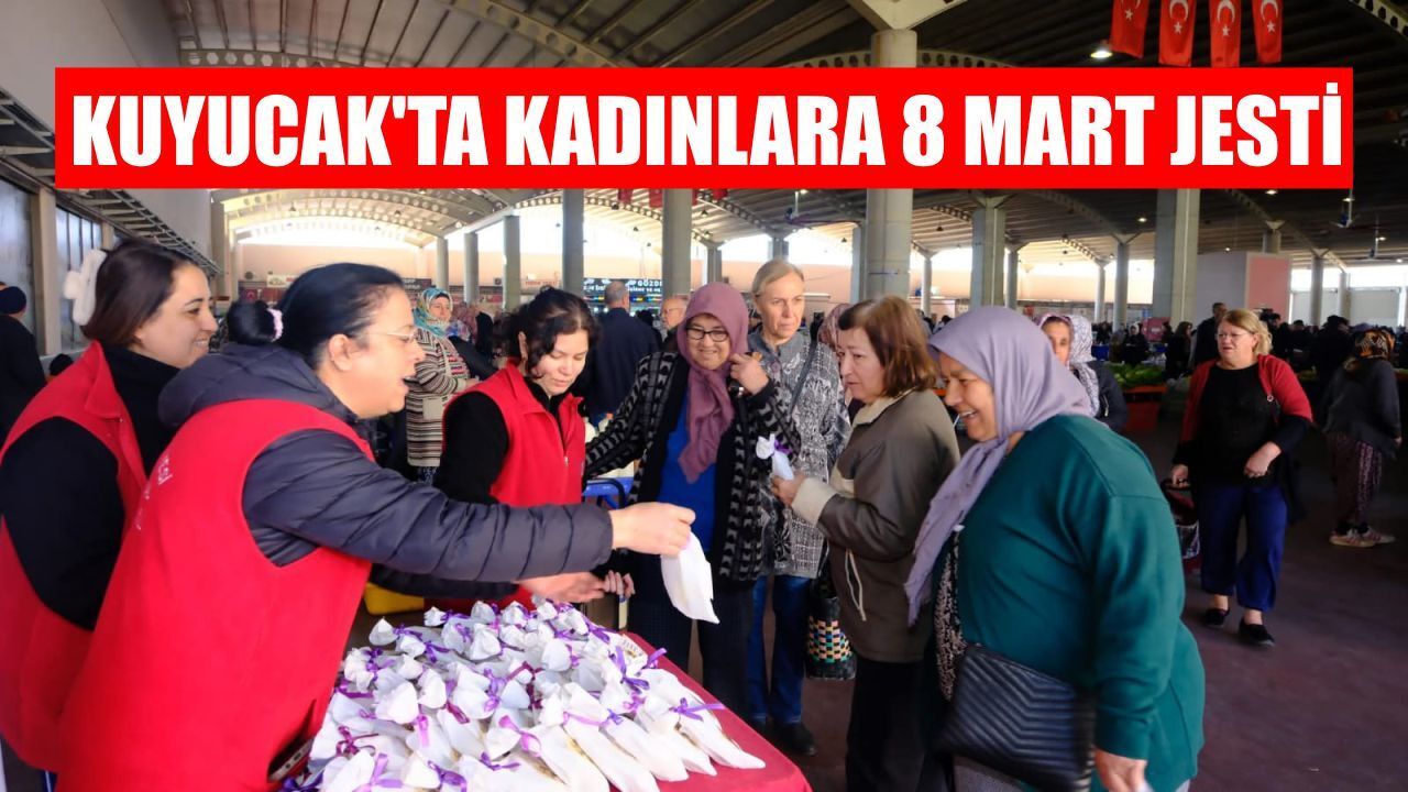 Kuyucak Belediyesi'nden pazar yerinde kadınlara anlamlı jest. Pazaryerinde alışveriş yapan ve tezgâh açan kadınlarla bir araya gelen belediye personeli, kadınlara günün anlam ve önemine dair mesajlarını iletti. Kadınlara yönelik gerçekleştirilen bu anlamlı etkinlik, vatandaşlar tarafından da memnuniyetle karşılandı.