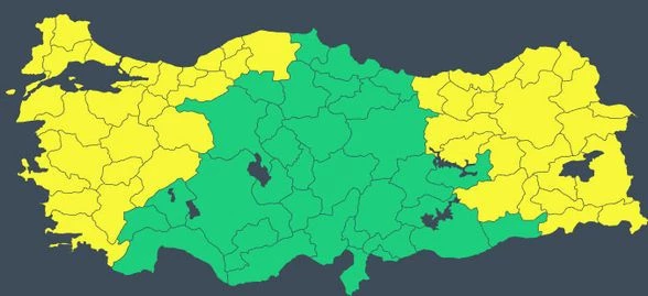 Meteoroloji Genel Müdürlüğü, risk haritasını güncelleyerek 48 kent için 'sarı' kodlu uyarı yayınladı. Bu illerde yaşayanların sel, fırtına ve ulaşımda aksamalara karşı tedbirli olması gerekiyor.
