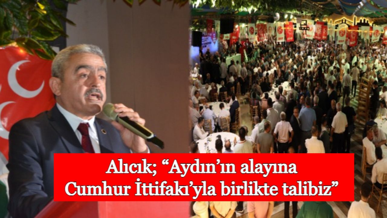 Yerel seçimlerde yumruğu hep birlikte masaya vurarak başarı elde etmenin öneminden bahseden Alıcık, Aydın’ın alayına Cumhur İttifakı’yla birlikte talip olduklarını belirterek, “Aydın’a, Denizli’ye, Manisa’ya bakmak lazım. Belediyecilik nasıl oluyor görmek lazım. Bu memlekette bu hareketin başarılı olması için özür dilenmesi gereken kim varsa özür dileyeceğiz. Aydın’da yerel seçimlerde hep birlikte yumruğu vuralım ve başarıyı elde edelim” dedi.