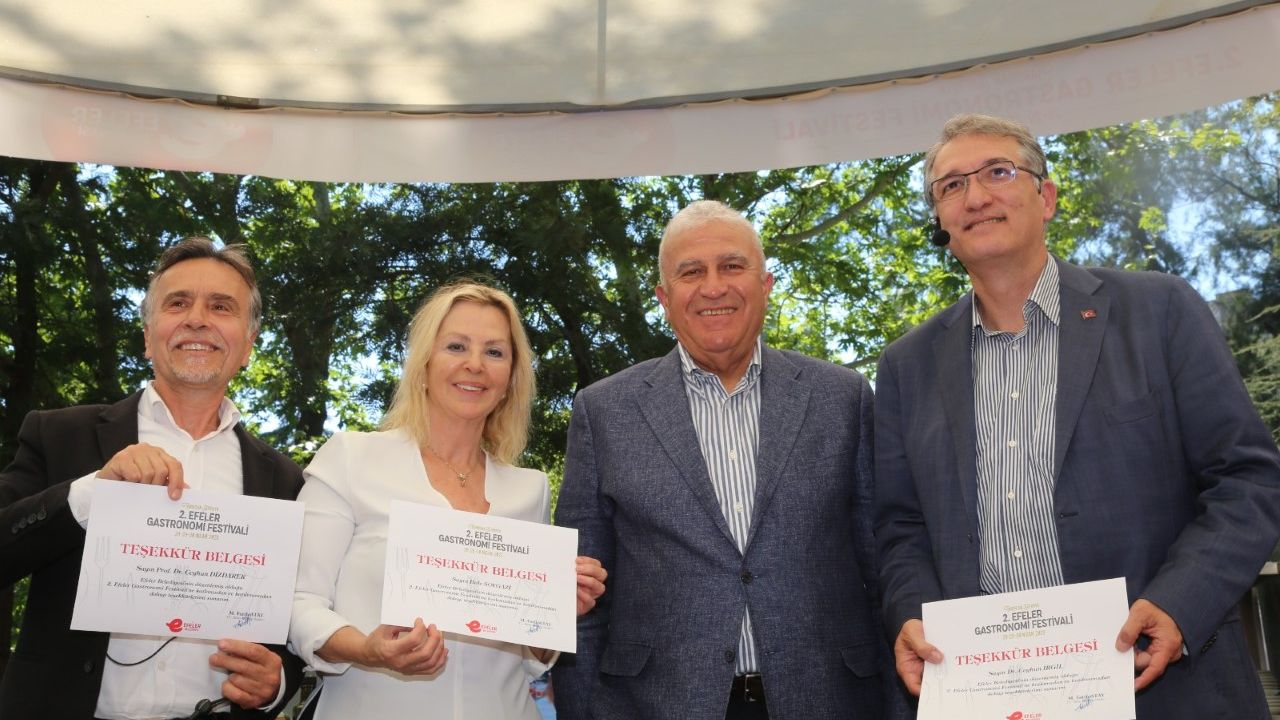 Efeler Belediyesi Kültür ve Sosyal İşler Müdürü Münür Alikoç’un vefatı nedeniyle buruk devam eden etkinliklerde günün ilk söyleşi konusu “Şölen Kültürü ve Keşkek” oldu. Moderatörlüğünü Slow Food Türkiye Kurucu Lideri Nedim Atilla’nın yaptığı söyleşinin konuşmacı koltuklarında yaptığı enfes keşkeklerle bölge halkı tarafından “Keşkekçi Hülya” ismiyle tanınan Hülya Yardımcı ve Halkbilim Uzmanı Gonca Tokuz yer aldı.