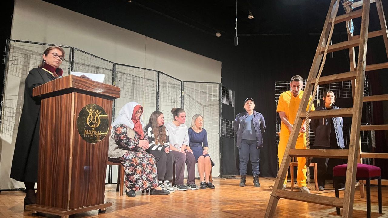 Nazilli Halk Eğitimi Merkezi Emek Arası Tiyatro Topluluğu’nun uzun hazırlık döneminin ardından sahnelediği " Hepimiz Mahkumuz" adlı oyun Nazilli Belediyesi Mehmet Yüzügüler Kültür Merkezi Tiyatro Salonu’nda sanatseverlerin karşısına çıktı. Merkezin öğretmenlerinden Kemalettin Bal tarafından yazılıp yönetilen oyun, iki aylık yoğun bir çalışmanın ürünü oldu. İlk kez seyirci karşısına çıkan tiyatro ekibi, salonun her noktasını dolduran yaklaşık 500 kişilik bir izleyici kitlesi tarafından büyük ilgi gördü. Bir saat süren oyunun sonunda sahnedeki ekip dakikalarca ayakta alkışlandı.