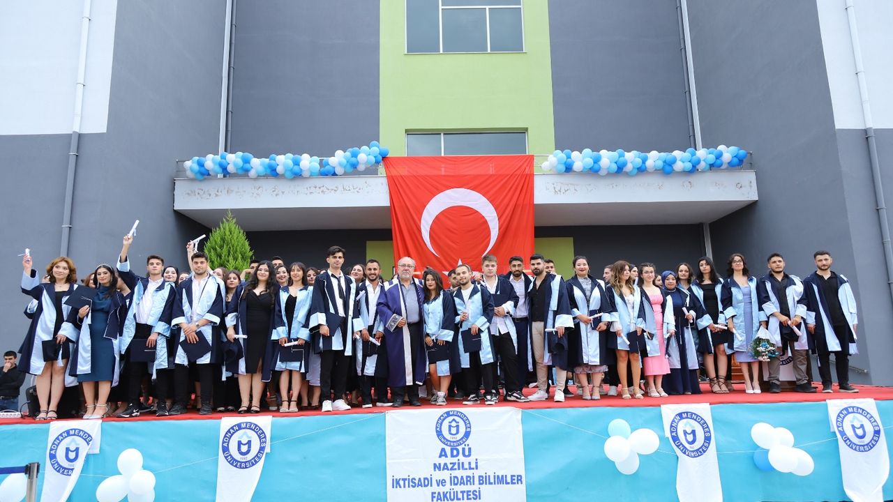 Nazilli İİBF Dekan V. Prof. Dr. Osman Peker mezuniyetlerinden dolayı öğrencileri tebrik ederek, “Üniversite sizi hayata ve mesleğe hazırladı. Üniversitede elde ettiğiniz bilgi ve birikimle geleceğinizi inşa edeceksiniz. Bizler Nazilli İktisadi ve İdari Bilimler Fakültesi olarak sizleri geleceğe en iyi şekilde hazırlamaya gayret ettik. Üniversitemizin tüm imkânlarını sizler için kullanmaya çalıştık. Fiziki anlamdaki eksiklerimizin farkındayız ve bunları gidermek için var gücümüzle çalışıyoruz. Ancak bilgi, birikim konusundaki yeterliliğimiz yapılan her türlü yarışma ve sınavda fakülte olarak öne çıkarmakta, mezunlarımızdan aldığımız güzel haberlerle gurur duymaktayız.” ifadelerini kullandı.