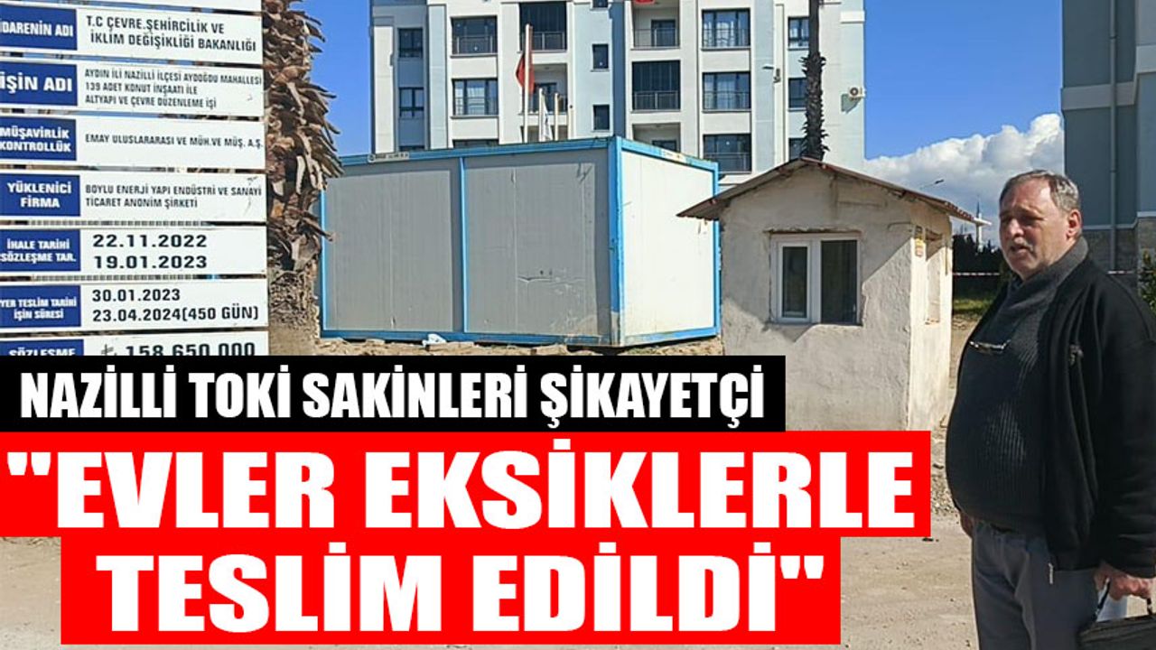 Toplu Konut İdaresi (TOKİ) tarafından Nazilli Aydoğdu Mahallesi'nde yaptırılan 139 konut geçtiğimiz günlerde hak sahiplerine teslim edildi ancak evlerin eksiklerle teslim edildiği iddiasıyla evlerde yaşayanlar şikayetlerini dile getirdi.