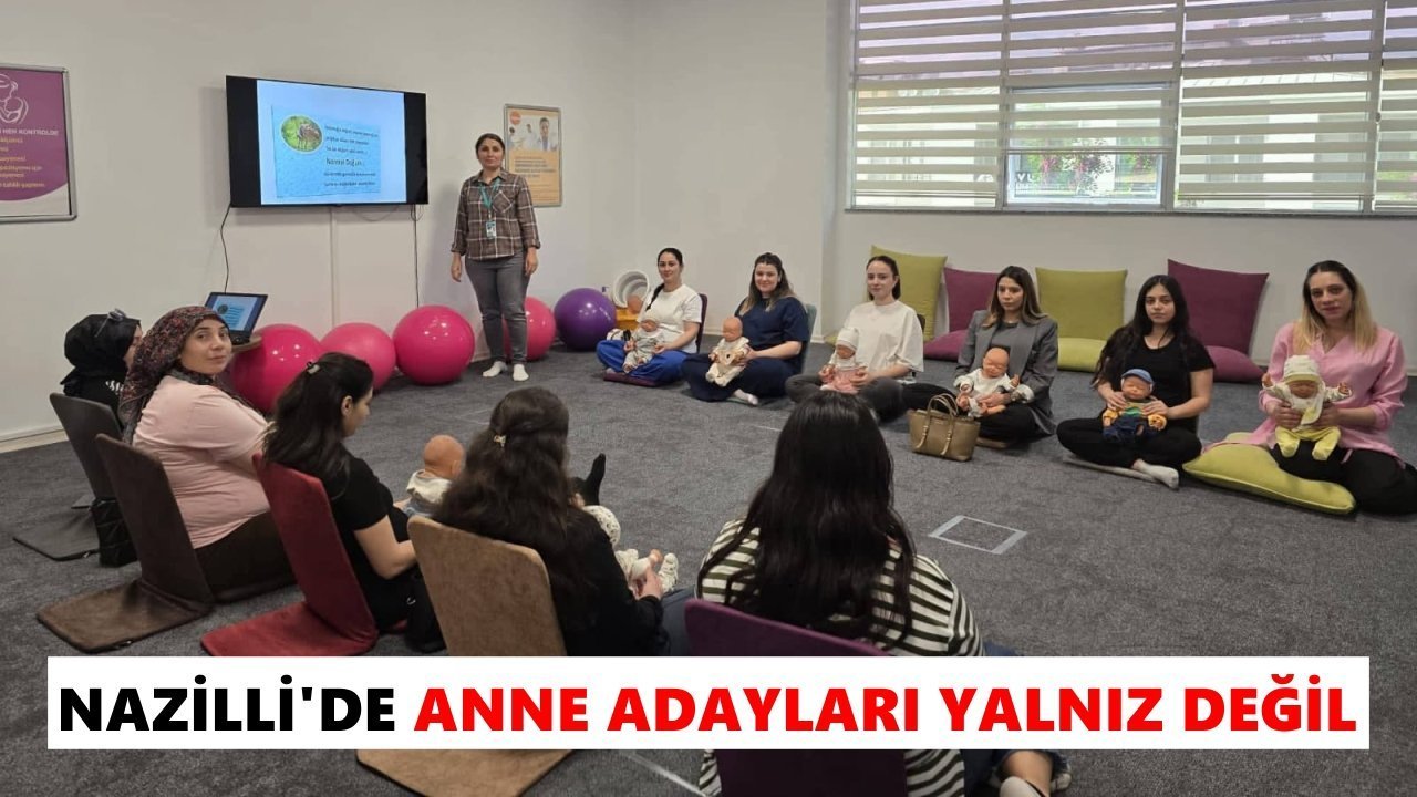 Nazilli İlçe Sağlık Müdürlüğü Cumhuriyet Sağlıklı Hayat Merkezi Gebe Okulu anne adaylarının gebelik sürecini daha sağlıklı, konforlu ve bilinçli geçirmeleri için çalışmalarını sürdürüyor. Okulda görevli ebe, fizyoterapist ve diyetisyenimiz tarafından anne adaylarına gebeliğin nasıl oluştuğunu ve bebeğin rahim içinde nasıl büyüdüğünü ve geliştiği, gebelik döneminde düzenli sağlık kontrolüne ne sıklıkta gidilmesi gerektiği, gebelikte bağışıklama ve yapılması gereken rutin tetkikler, gebelikte anne bedeninde oluşan fizyolojik ve psikolojik değişiklikler, gebenin günlük bakım ve hayat aktiviteleri, gebelikte sık karşılaşılan rahatsızlıklar ve çözüm önerileri uzmanlarca anlatılıyor.