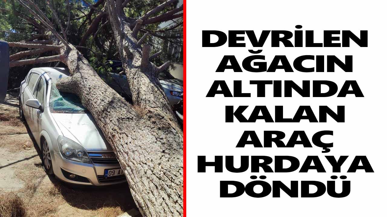 İlçeye bağlı Esenköy Mahallesi’nde bir benzinlikte bulunan asırlık çam ağacı, şiddetli rüzgârın etkisiyle devrilerek park halindeki bir aracın üzerine düştü.
