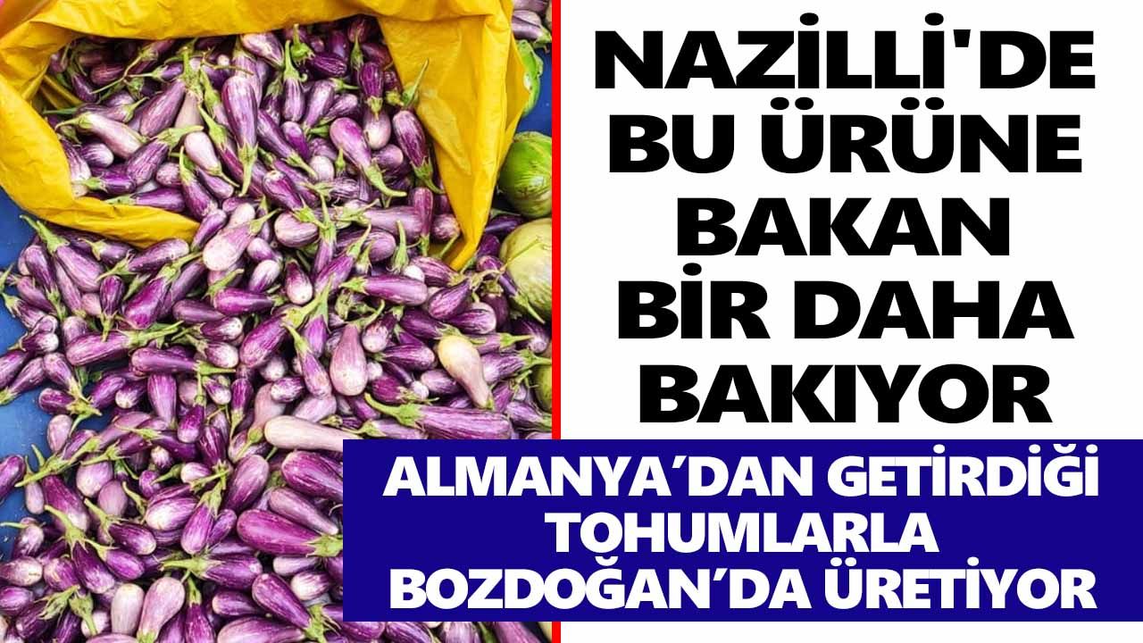 Baby patlıcanın tohumunu Almanya'dan getirten ve Bozdoğan'a bağlı Kızılcakır Mahallesi'ndeki bahçesinde üretimini yapan Recep Gürel Nazilli Perşembe pazarında baby patlıcan satan tek esnaf olarak bu ilginç ürünü Nazilli halkının beğenisine sunuyor. Küçük boyutu ve ilginç renkleriyle bakanların bir daha baktığı baby patlıcanın tadı da diğer patlıcan türlerinden oldukça farklı.