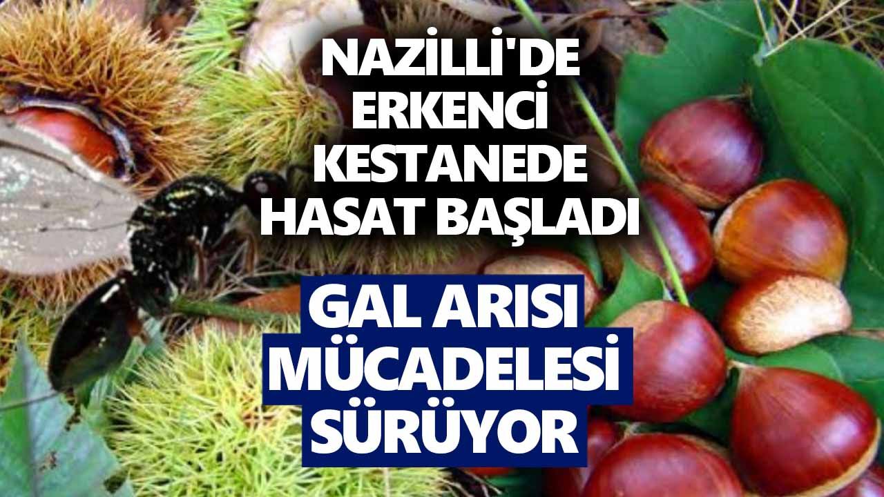 Geçtiğimiz yıl 10 bin ton kestane üretimi yapan Nazilli'de yeni sezonda da yakın miktarda rekolte bekleniyor. Kestane üreticisinin başlıca sorunlarından olan gal arısı zararlısına karşı başlatılan mücadele sürüyor. Yıllar önce kestane çeşidini artırmak amacıyla İtalya'dan ithal edilen kestane fidanlarıyla birlikte gelen gal arısı zararlısı Nazilli'deki kestane ağaçlarının büyük bölümü sarsa da verdiği zarar korkutucu boyutlara ulaşmadan önlem alındı. Tarım ve Orman Bakanlığı ile Orman Genel Müdürlüğü'nün ortaklaşa başlattığı mücadele kapsamında gal arısı zararlısına karşı kullanılan torymus sinensis adlı sineğin Nazilli'deki kestane bahçelerine salınımı yapıldı.