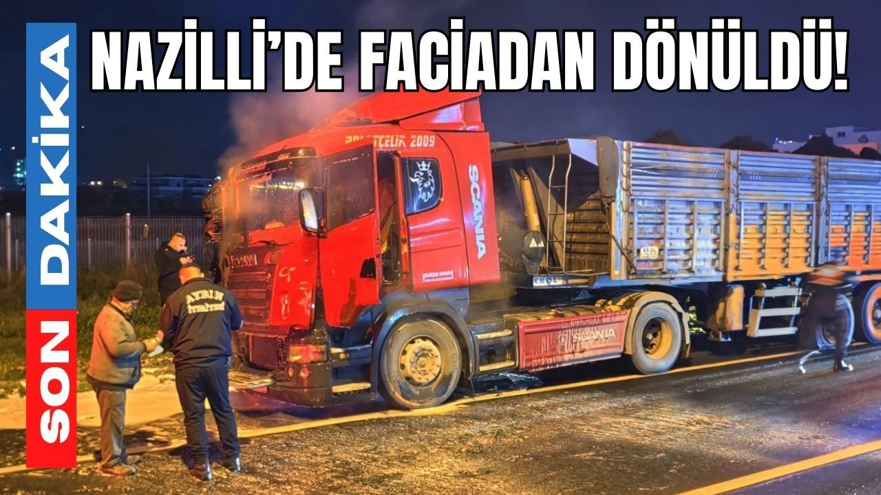 Aydın’ın Nazilli ilçesinde akşam saatlerinde yaşanan tır yangınında faciadan dönüldü