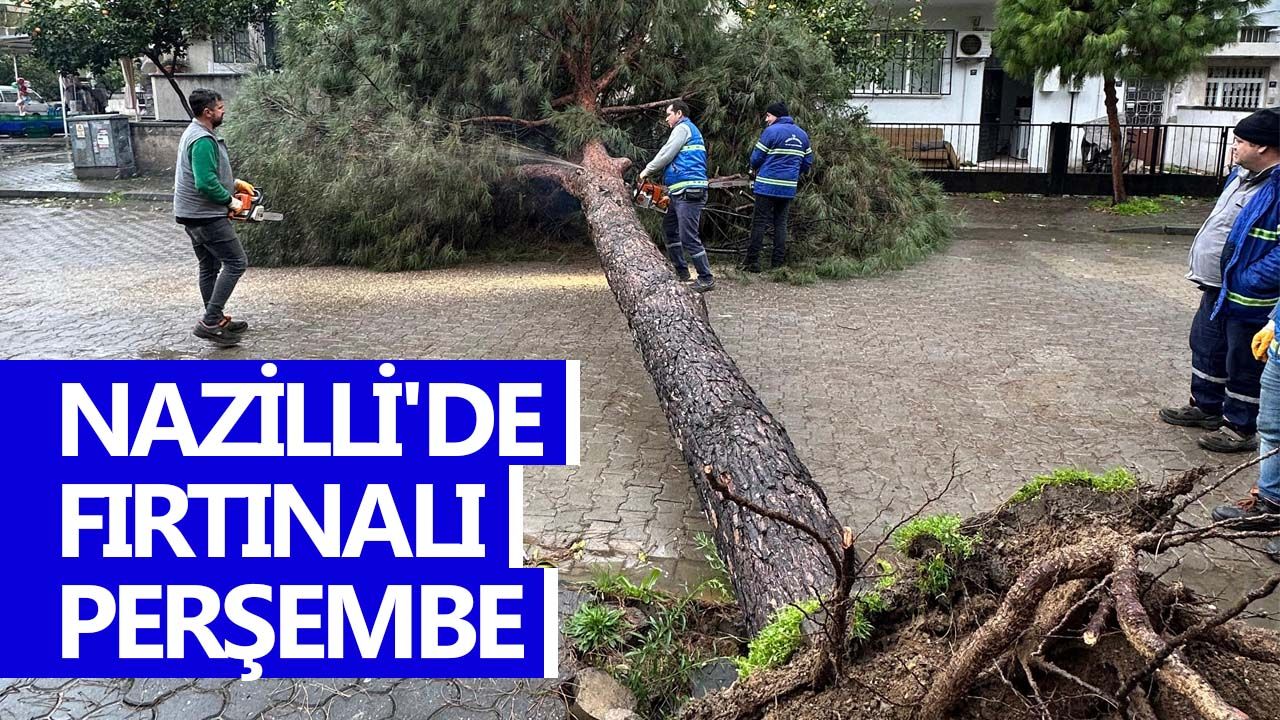 Nazilli'de şiddetli sağanak yağış ve fırtına hayatı olumsuz etkiledi. Öğle saatlerinden itibaren şiddetini artıran yağmura eşlik eden fırtına nedeniyle bazı bölgelerde ağaçlar devrildi. Nazili Belediyesi Park ve Bahçeler Müdürlüğü ekipleri vatandaşların ihbarıyla harekete geçti. Yağışların ardından sahaya çıkan ekipler, vatandaşlardan çağrı merkezine gelen ihbarlar başta olmak üzere riskli bölgelerde denetim gerçekleştirdi.