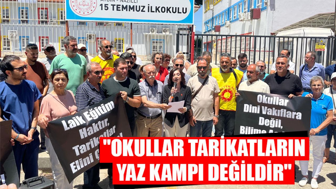 Basın açıklamasını okuyan CHP Nazilli İlçe Başkanı Aslı Ökmen, Hayrat Vakfı’nın yaz okulu adı altında yürüttüğü çalışmaları “ideolojik kuşatma” olarak nitelendirirken “Bu yalnızca bir kurs değil; devletin asli görevlerinden biri olan eğitimin cemaatlere devredilmesidir,” diyen Ökmen, Milli Eğitim Bakanlığı’nı da eleştirerek protokollerle eğitim sisteminin ideolojik bir yapıya dönüştürüldüğünü öne sürdü.
