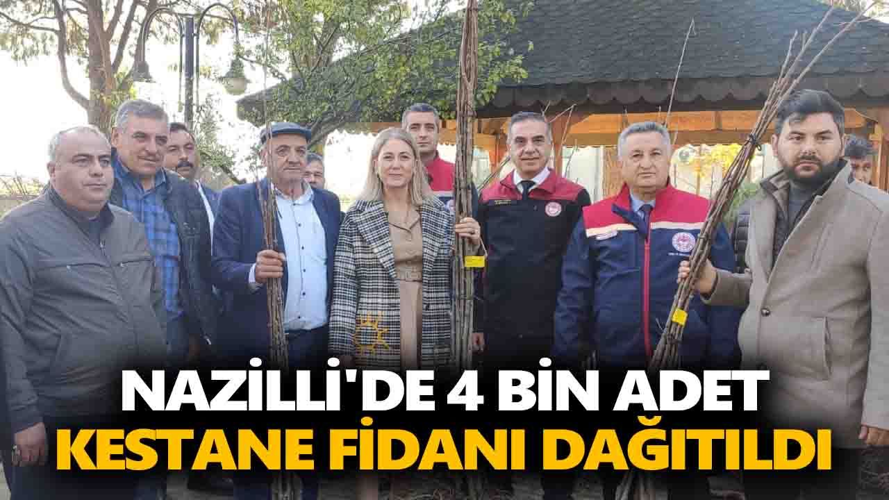 Nazilli'nin başlıca tarım ürünlerinden olan kestanede Aydın Tarım ve Orman İl Müdürlüğü ve Aydın Valiliği YİKOB iş birliğiyle üreticiyi desteklemek üzere başlatılan yüzde 50 hibeli kestane fidanı projesi sürüyor. Geçtiğimiz yıl olduğu gibi bu yıl da Nazillili kestane üreticisine yüzde 50 devlet hibeli hastalıktan ari kestane fidanı dağıtıldı. Nazilli Pamuk Araştırma Enstitüsü'den gerçekleştirilen dağıtım törenine Nazilli Kaymakamı Huriye Küpeli Kan, Aydın Tarım ve Orman İl Müdürü Ayhan Temiz, İlçe Emniyet Müdürü Erdal Esen, İlçe Jandarma Komutanı Yüzbaşı Ahmet Refik Özsoy, İlçe Tarım ve Orman Müdürü Sunay Güler, muhtarlar ve üreticiler katıldı.