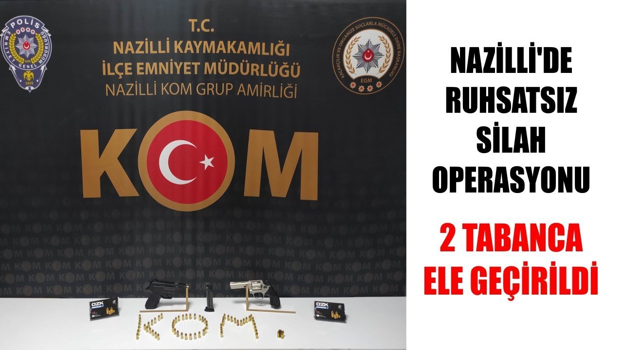 Aydın İl Emniyet Müdürlüğü’nden konu ile ilgili olarak yapılan açıklamada; “Nazilli İlçe Emniyet Müdürlüğü Kaçakçılık ve Organize Suçlarla Mücadele Büro Amirliği personelimizce sürdürülen çalışmalar kapsamında, 16.04.2026 tarihinde C.D. isimli şahıs yakalanmış, şahsın iş yerinde yapılan aramada; 2 adet ruhsatsız tabanca, 70 adet tabanca fişeği ele geçirilmiştir. Olayla ilgili yakalanan şahıs hakkında adli işlem başlatılmıştır” ifadeleri kullanıldı.