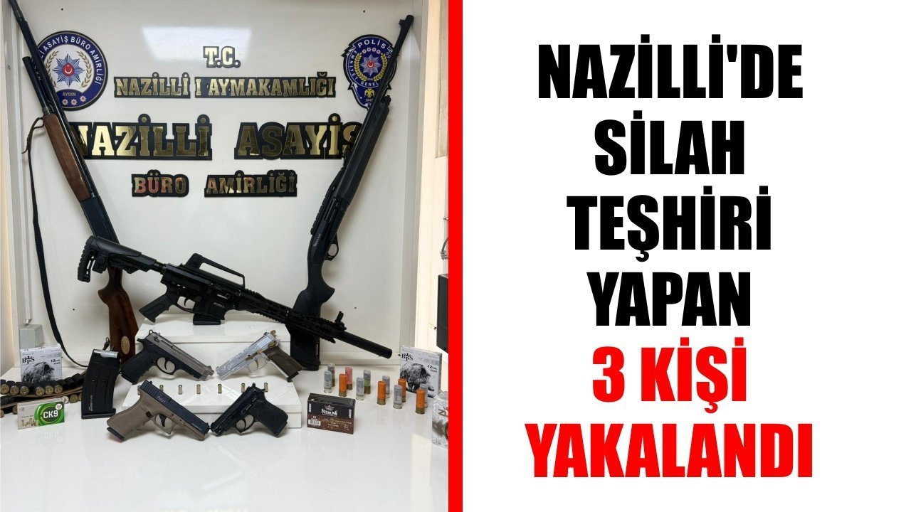 Aydın İl Emniyet Müdürlüğü’nden yapılan açıklamada; “Sosyal medya üzerinden silah teşhiri yapan şahısların tespit edilmesi ve yakalanmasına yönelik Nazilli İlçe Emniyet Müdürlüğü personelimizce yapılan çalışmalar kapsamında; 16.04.2026 tarihinde V.P., Ş.K. ve H.K. isimli şahıslar yakalanmıştır. Şahısların ikametlerinde yapılan aramalarda; 3 adet av tüfeği, 167 adet av tüfeği kartuşu, 5 adet kuru sıkı tabanca ve bu tabancalara ait 86 adet fişek 1 adet airsoft olarak tabir edilen tabanca ele geçirilmiştir. Yakalanan şahılar hakkında gerekli adli işlemler başlatılmıştı” ifadeleri kullanıldı.