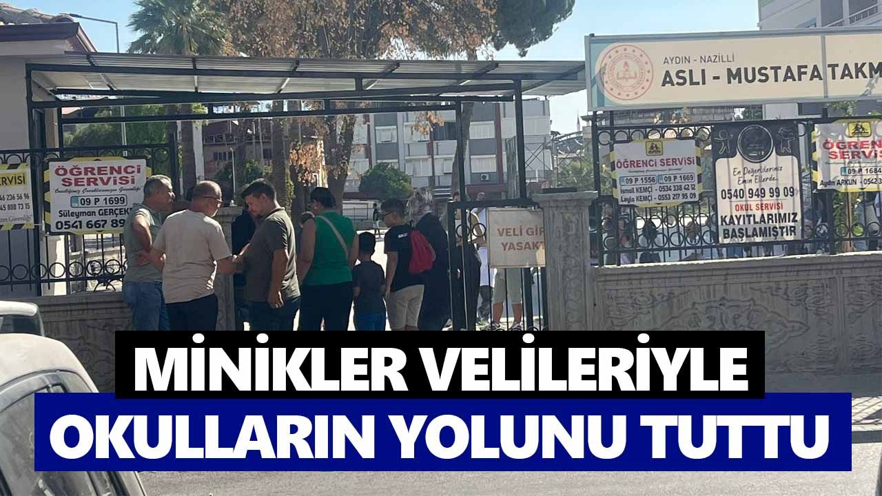 Nazilli'de de de minikler sabah saatlerinde velileriyle birlikte okullarının yolunu tuttu. İlçedeki okulların önünde sabah saatlerinde yoğunluk oluştu.