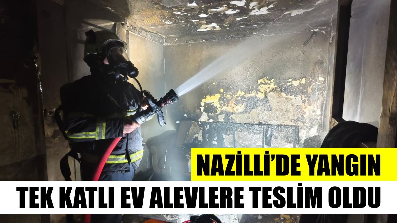 Nazilli’de meydana gelen yangında tek katlı bina alevlere teslim oldu. Olay, gece saatlerinde Sümer Mahallesi 381 Sokak üzerinde bulunan bir ikamette meydana geldi. Edinilen bilgiye göre, E.T.’ye ait olduğu öğrenilen tek katlı evde henüz belirlenemeyen bir nedenle yangın çıktı. Evden yükselen alevleri gören mahalle sakinlerinin ihbarı üzerine bölgeye Aydın Büyükşehir Belediyesi İtfaiye ekipleri, polis ve sağlık ekipleri sevk edildi.