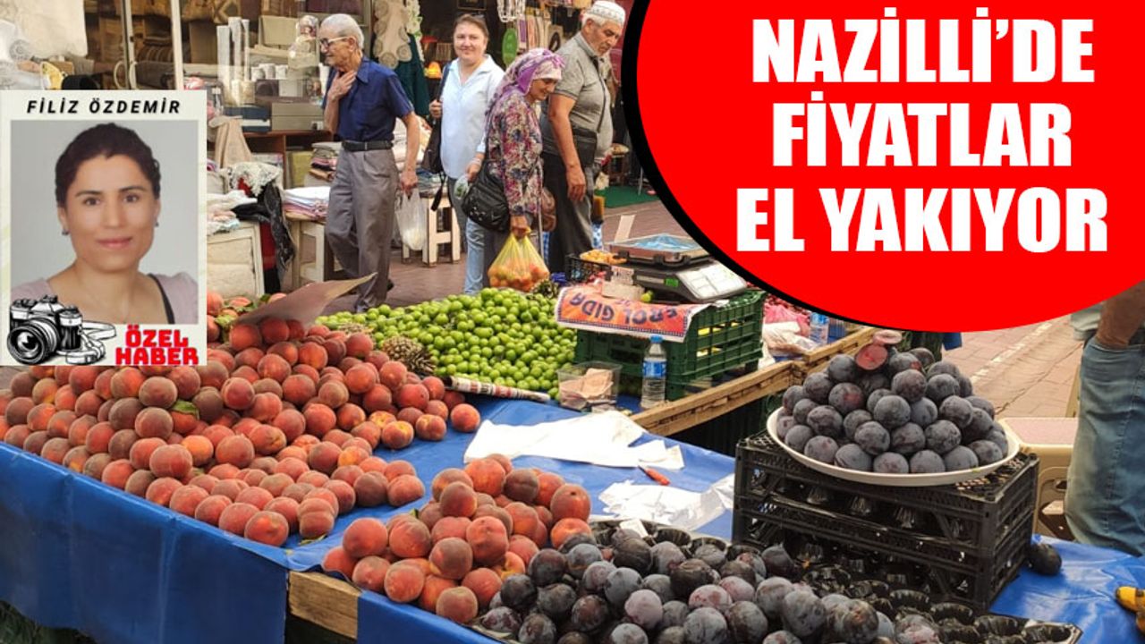 Nazilli Perşembe pazarında eriğin fiyatı 250 liradan başlayıp 400 liraya kadar çıkıyor. Şeftali, kayısı, kiraz gibi meyveler de üç haneli rakamlara satılıyor. Esnaf eriğin fiyatının bu kadar yüksek olmasını sezon sonu olmasına bağlarken tezgahlara yeni gelen yaz meyvelerinin fiyatları da vatandaşın elini yakıyor.