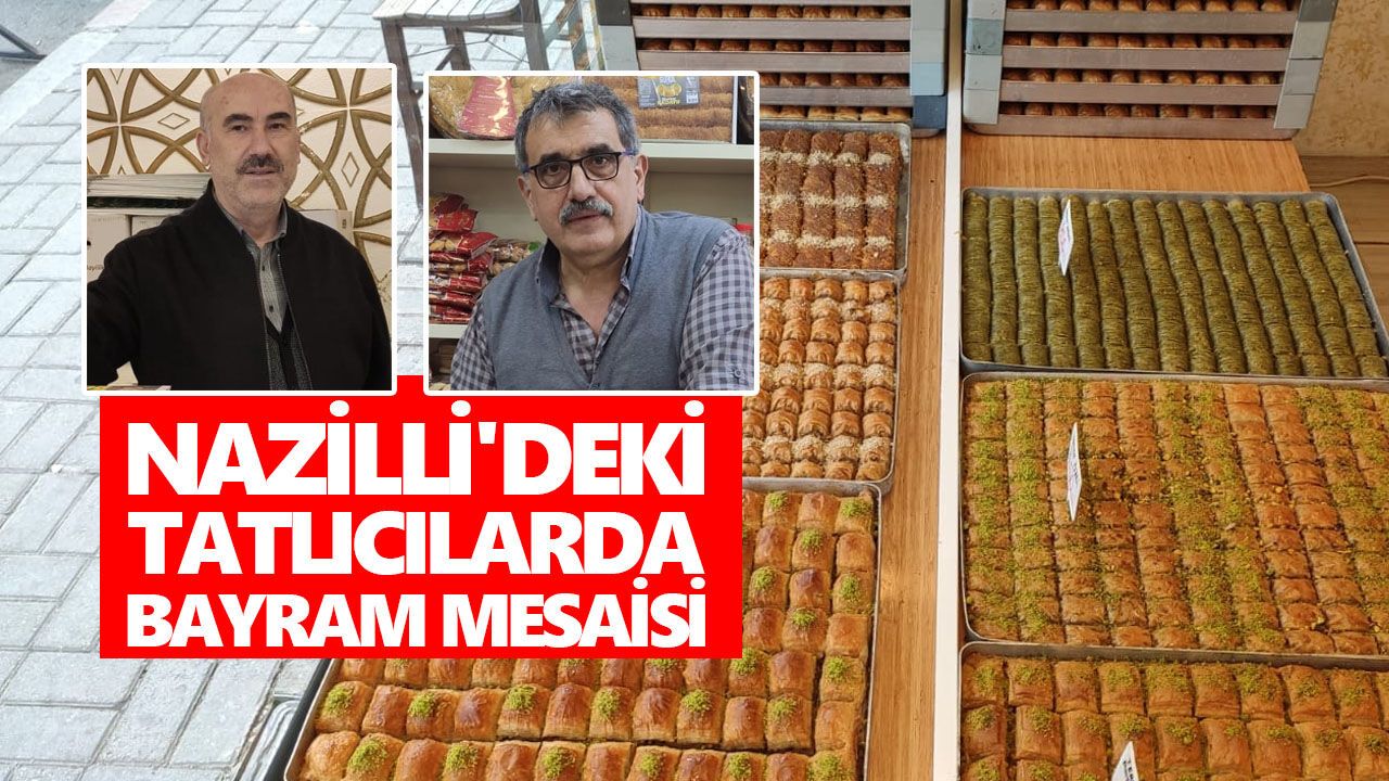 Nazilli'de tatlıcılarda bayram dolayısıyla yoğun mesai yaşanırken birçok tatlıcı dükkanı gece yarısına kadar açık kalıyor. Her cebe uygun tatlının bulunduğu Nazilli'de türüne ve kalitesine göre tatlı fiyatları değişiyor.