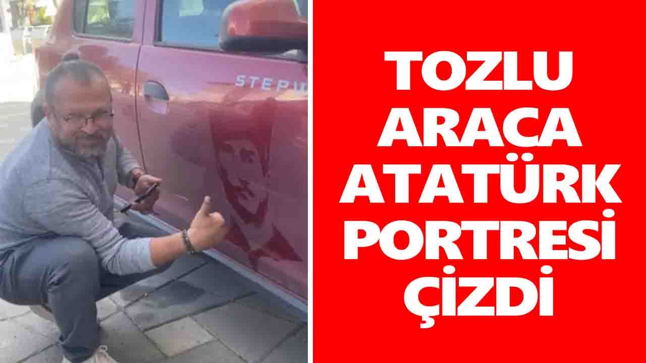 Altınok tozla kaplı bir aracın kapısına elleriyle Atatürk portresi çizdi. Çetin Öğretmen'in çizdiği portre kısa sürede sosyal medyada gündem oldu.