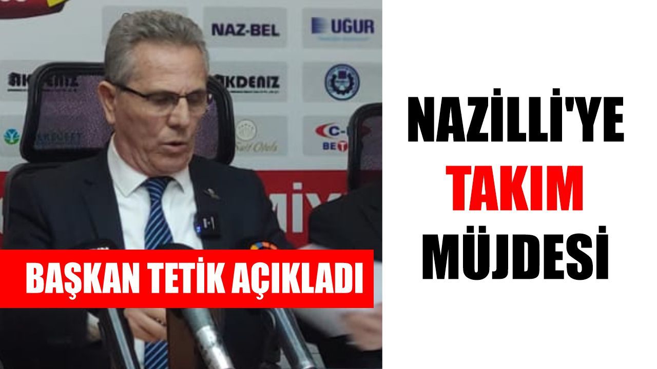 Nazilli Belediye Başkanı Ertuğrul Tetik, Nazilli Gazeteciler Cemiyeti'nde yaptığı basın toplantısında önemli açıklamalarda bulundu. Nazillispor Başkanı Şahin Kaya'nın yasa dışı bahis ve şike soruşturması kapsamında tutuklanmasından sonra takım ligden çekilmiş Nazillispor takımsız kalmıştı. Taraftar ise Nazilli'ye yeni bir takım kazandırılması talebini sosyal medyadan açıklamıştı. Başkan Tetik, Nazilli Gazeteciler Cemiyeti'ndeki açıklamasında sorulan bir soru üzerine Nazilli adını yaşatacak yeni bir spor yapılanması için hazırlıkların olduğunu belirtti.