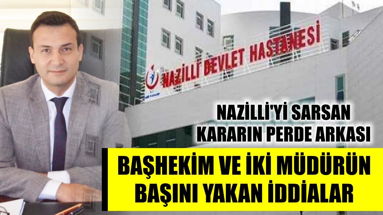 Nazilli dün şok bir haberle sarsıldı. Nazilli Devlet Hastanesi'nin Başhekimi Necati Akkaya, Sağlık Bakım Hizmetleri Müdürü Şermin Volaka ve Destek-Kalite Hizmetleri Müdürü Hasan Küçüköner Sağlık Bakanlığı'nın yürüttüğü soruşturma neticesinde görevden alındı. Edinilen bilgilere göre Başhekim Necati Akkaya ve iki müdürün görevden alınmasında, vatandaşların CİMER üzerinden yaptığı çeşitli şikayetler etkili oldu.