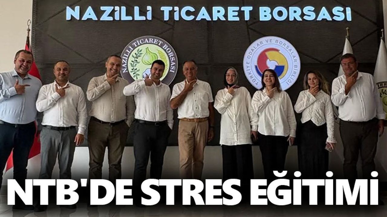 Nazilli Ticaret Borsası (NTB) personelinin kişisel gelişimine yönelik eğitim programlarını sürdürüyor. Son olarak borsa çalışanlarına stresle baş etme yöntemleri anlatıldı. Borsa binasında yapılan eğitimde Elzem Akademi Eğitmeni Teyfik Bıyıklı tarafından iş dünyasında sıkça karşılaşılan stresli çalışma ortamlarında uygulanması gereken metotlar, stresin sebepleri ve bu sebeplerle başa çıkabilme yöntemleri hakkında bilgiler verildi.