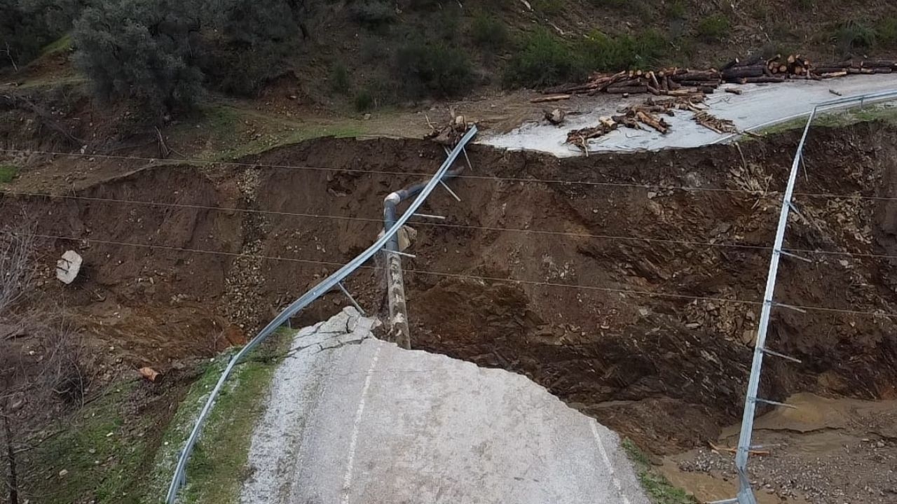 İzmir’de hafta boyunca etkili olan kuvvetli sağanak, Ödemiş-Turgutlu yolunda büyük hasara yol açtı. Dün kısmen çöken yol, Yukarıdere Köprüsü’nün tamamen yıkılmasıyla ulaşıma kapandı. Köprünün yıkılmasıyla yolun ortasında boşluk oluşurken, kara yolu ikiye ayrıldı.