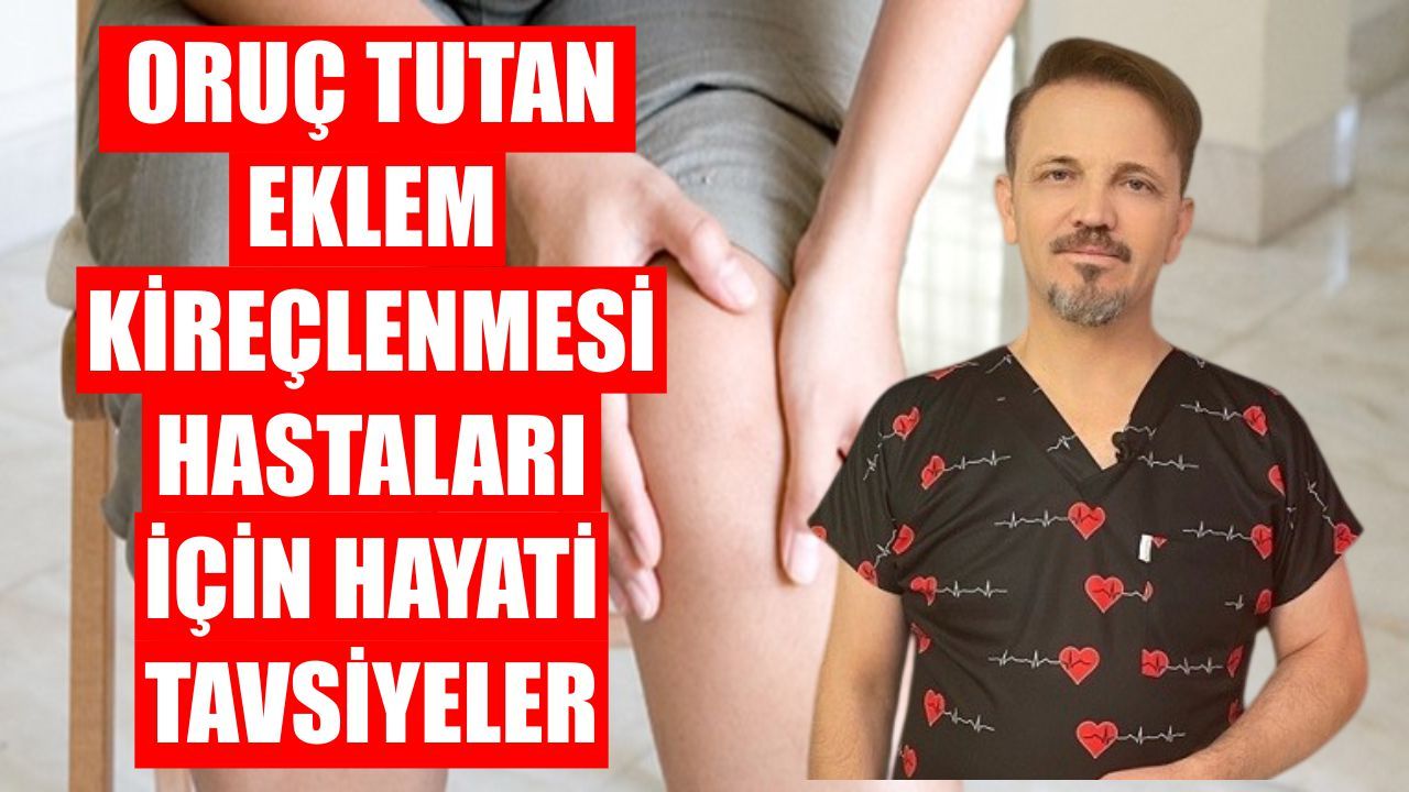 Eklem kireçlenmesi olan kişilerin ramazan ayında oruç tutmasında bir mani olmadığını söyleyen Fizik Tedavi ve Rehabilitasyon Uzmanı Doç.Dr. Ahmet İnanır, bu konuda kamuyun aydınlanması için açıklamalarda bulundu. Doç. Dr. Ahmet İnanır, ''Bu beslenme önerilerine dikkat ederek Ramazan’da hem orucunuzu rahat tutabilir hem de eklem sağlığınızı destekleyebilirsiniz.'' dedi.