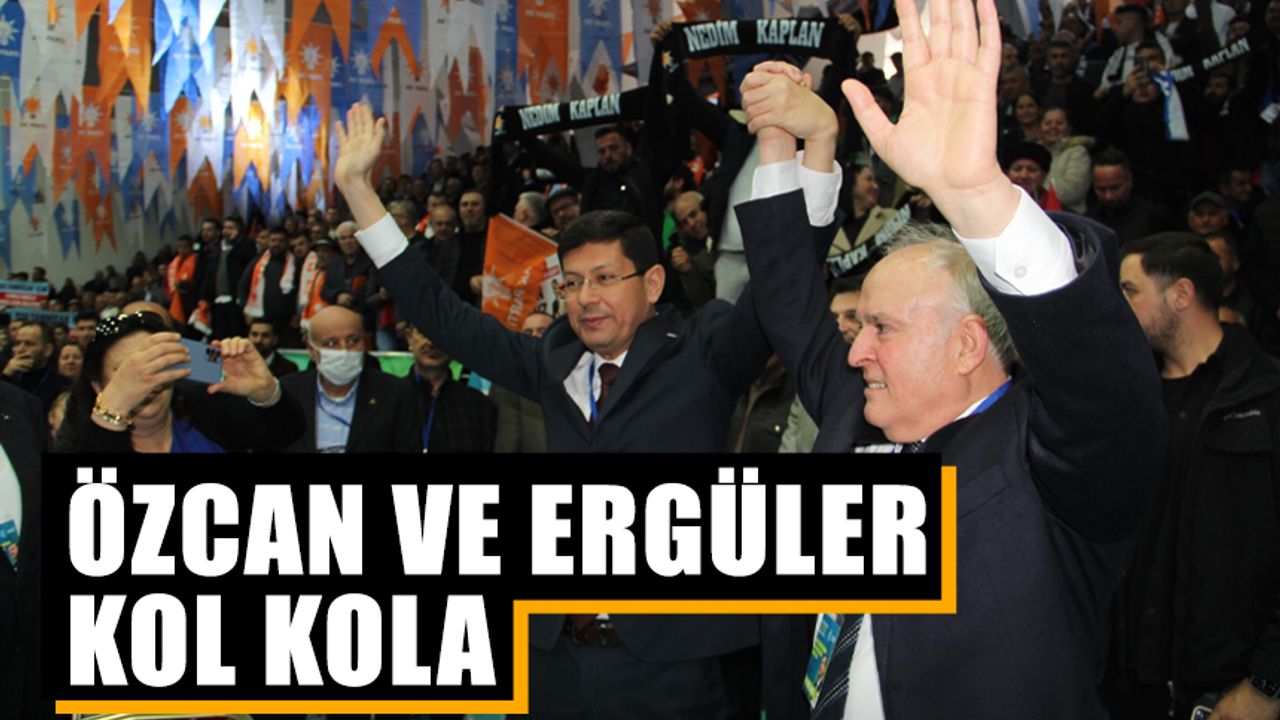 Özcan ve Ergüler, partililerin tezahürat ve alkışları karşısında ellerini kaldırarak, salonda bulunanları selamladı. Özcan ve Ergüler, protokole ayrılan bölümde de yan yana oturarak toplantıyı takip etti.