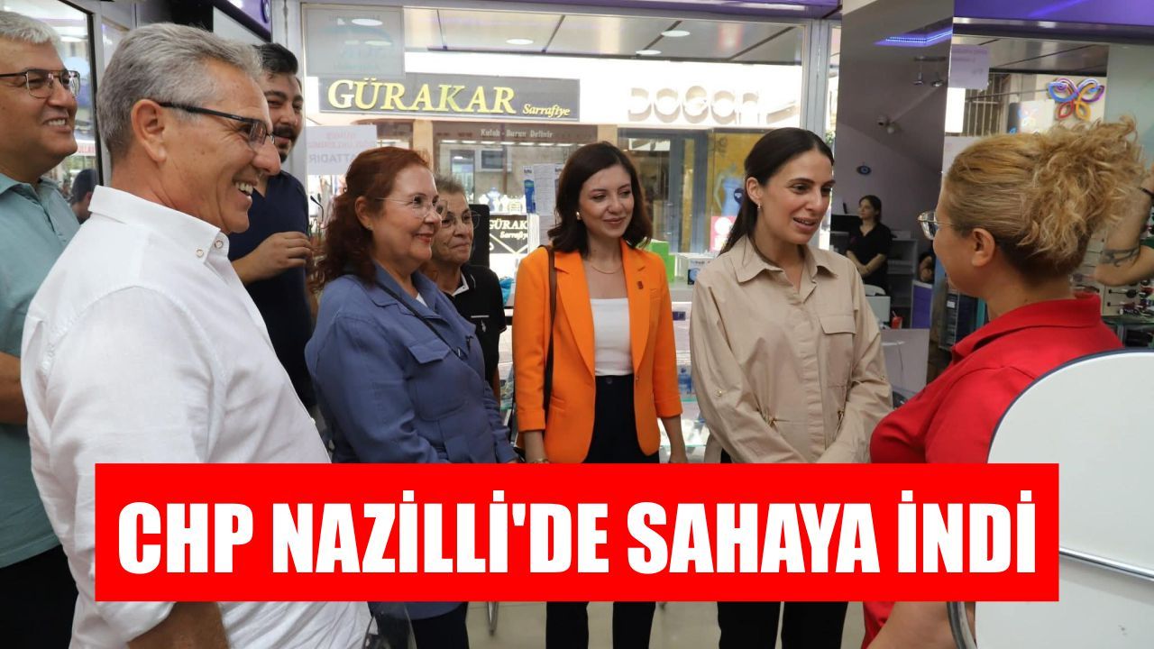 CHP Muğla Milletvekili Gizem Özcan, Belediye Başkanı Ertuğrul Tetik, Aydın İl Kadın Kolları Başkanı Ayşe Özdemir, Nazilli İlçe Başkanı Aslıhan Ökmen ve ilçe örgütümüz ile birlikte Nazilli'de sahaya indir. Perşembe pazarını dolaşan CHP heyeti esnafla ve vatandaşla sohbet ederek sorun ve taleplerini dinledi. Ziyareti sosyal medya hesabından paylaşan İlçe Başkanı Aslıhan Ökmen "Uzatılan her elin değerini biliyor, halkımızın hak ettiği yarınlar için çalışmaya devam ediyoruz. Her geçen artan yoksulluğa karşı, yönetilemeyen Türkiye’nin faturasını halka kesen iktidara buradan bir kez daha çağrıda bulunuyoruz: Erken değil, derhal seçim" diyerek bir kez daha seçim talebini yineledi.