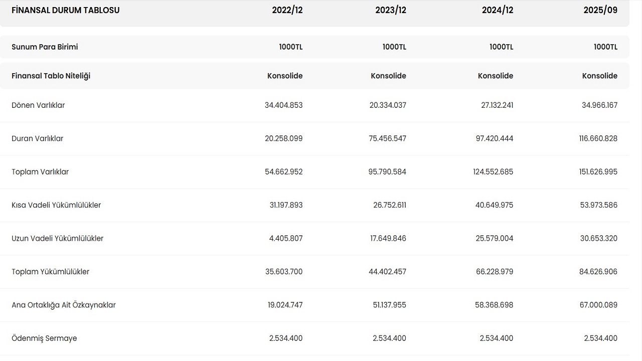 Geçtiğimiz çeyreğe göre yüzde 4 oranında düşen firmanın özkaynakları da 69 milyar liranın üzerinden 67 milyar liraya indi. Şirketin borçluluğuysa son 3 ayda yüzde 5 azaldı ve 43,5 milyar liradan 41,4 milyar liraya geriledi.